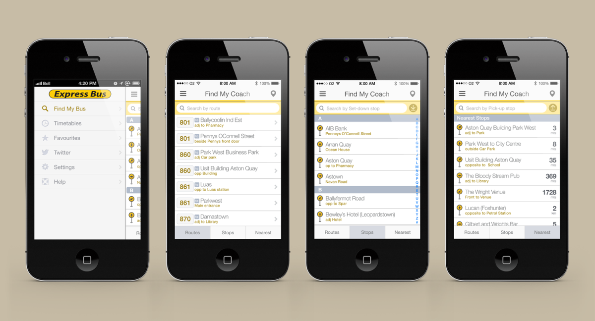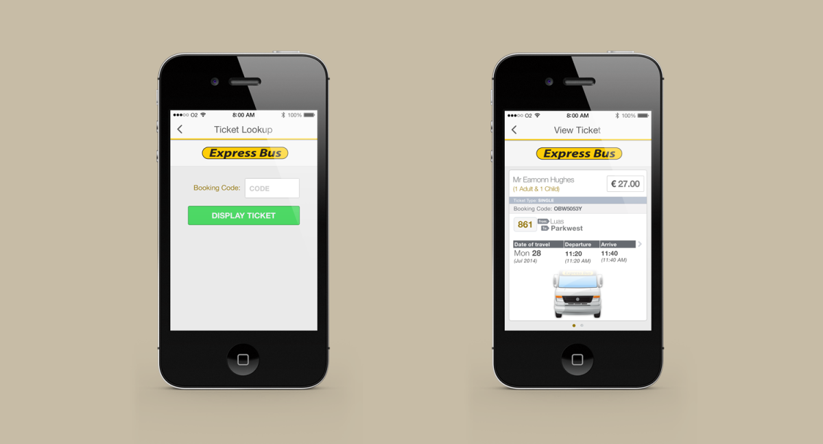 company in Dublin. Primarily I worked on the vehicle icon to bring some customised design to the mobile app and showcase the Express Bus brand elements, then the user interface was addressed to reflect our view of a useful app that can be used for its passengers.